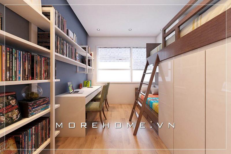 Mẫu thiết kế phòng ngủ với giường tầng thông minh kết hợp khu học tập cho bé