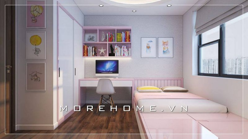 Thiết kế phòng ngủ bé gai đẹp, cửa sổ được bố trí hợp lí kích thước lớn tạo cảm giác cho căn phòng luôn thông thoáng tràn ngập ánh sáng tự nhiên