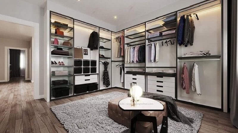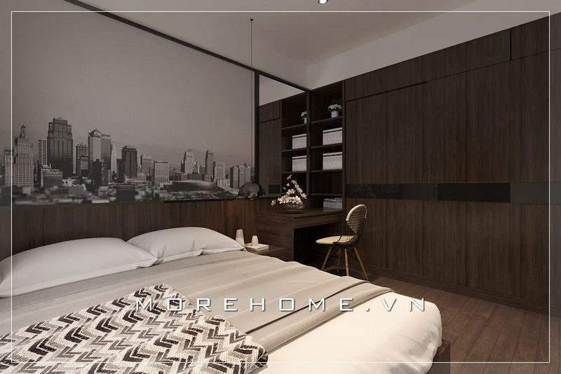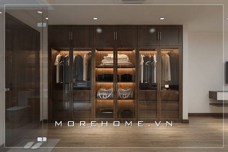 Tủ quần áo gỗ óc chó được thiết kế hiện đại, âm tường, đảm bảo cho căn phòng thêm rộng thoáng hơn cả