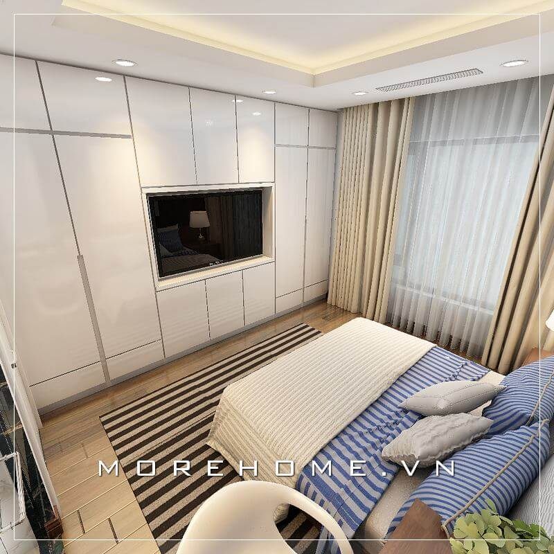 Tủ quần áo hiện đại được thiết kế âm tường kịch trần tạo cho căn phòng ngủ thêm thoáng rộng hơn