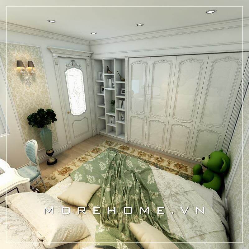 Gợi ý thiết kế nội thất phòng ngủ trẻ em đẹp và tiện nghi với bộ tủ quần áo 4 cánh hiện đại âm tường ấn tượng