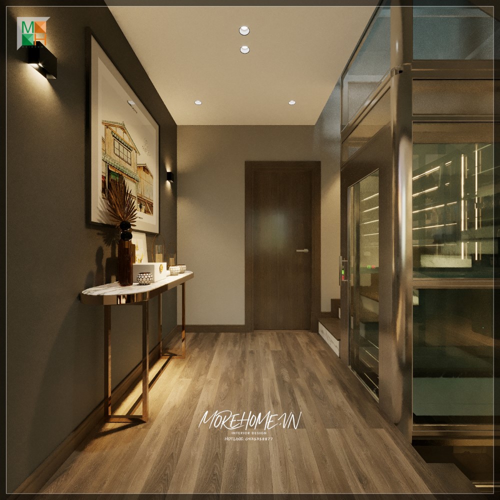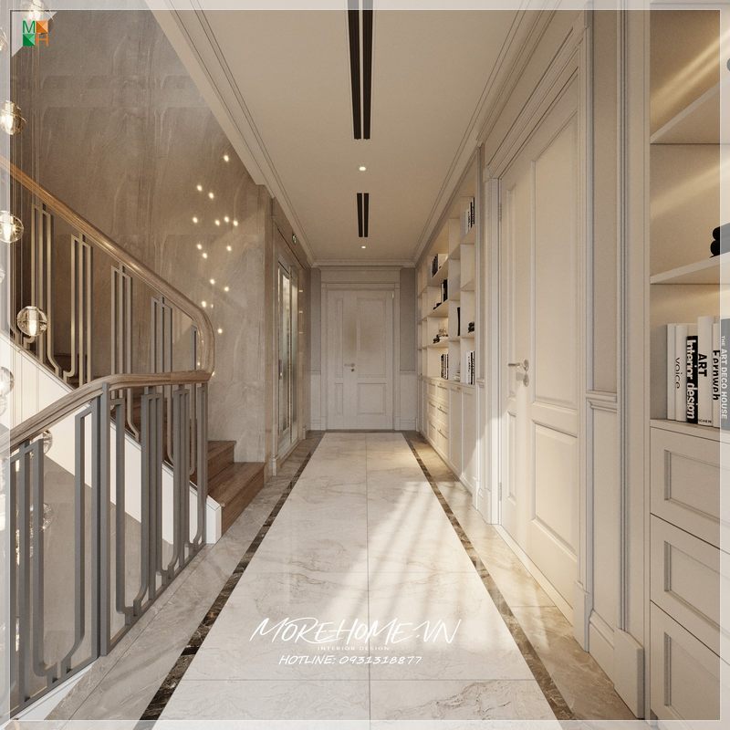 Thiết kế hành lang tầng không gian di chuyển đi lại giữa các không gian phòng trong nhà với nhau mạch ngầm gắn kết, mang ý nghĩa phong thủy riêng