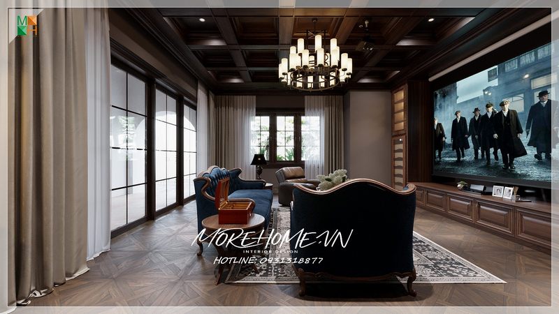 Biệt thự Vinhomes Greenbay Hà Nội có một mẫu sofa gỗ óc chó bọc da đẹp đẳng cấp.