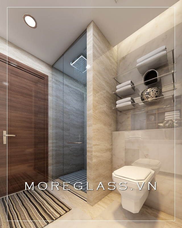Mẫu phòng tắm được làm từ kính cường lực để phù hợp với căn hộ chung cư cao cấp.